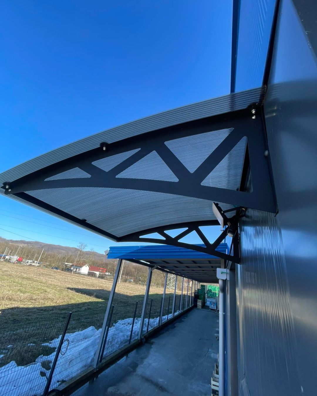 Sky Guard nadstrešnica pruža pouzdanu zaštitu od kiše, snijega i sunca, uz moderan arhitektonski izgled. Idealna je za ulaze, terase i poslovne objekte gdje je potrebna funkcionalna i estetski usklađena zaštita.